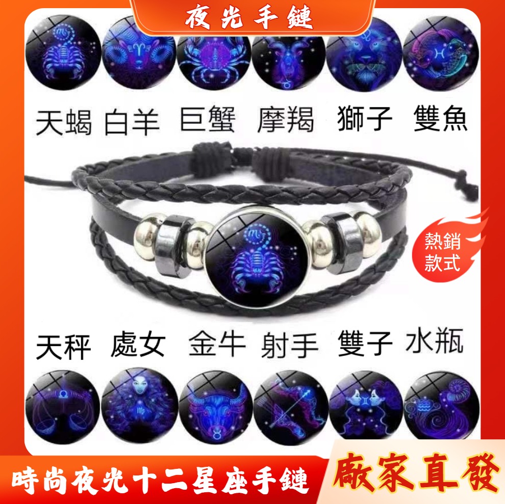 4分鐘前十二星座手鍊情侶皮手鍊多層編織時尚,夜光十二星座手環飾品小清新 - 【夜光十二星座手鍊 六入組】